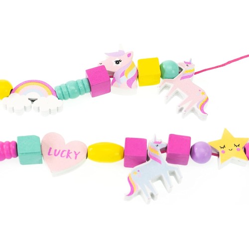 - WOODEN BEADS UNICORNI: è una confezione di perline di legno assortite per creare braccialetti e collane originali e creativi per bambini.
