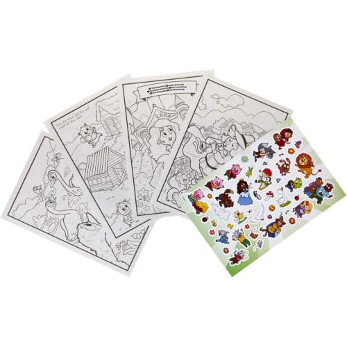 Album con 96 pagine da colorare e facili attività didattiche tematizzato con le fiabe da raccontare. le scenette rappresentano storie classiche e senza tempo da tramandare alle nuove generazioni. Cappuccetto Rosso, I Tre Porcellini e tante altre! Include 1 foglio di adesivi riposizionabili per decorare le scenette.