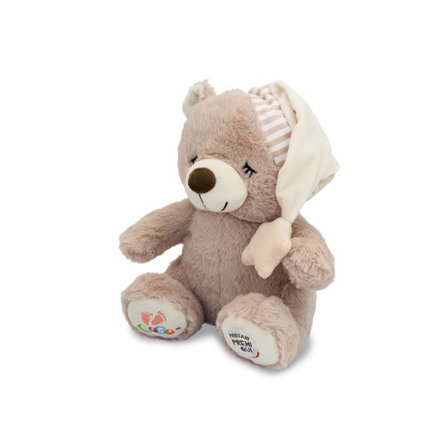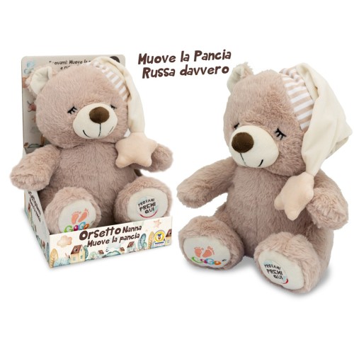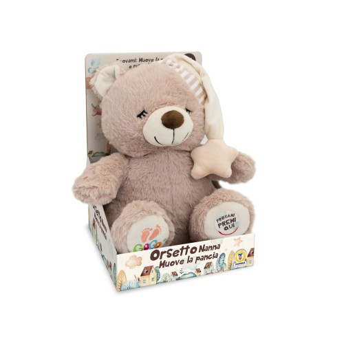 INTERATTIVITÀ: Premendo il pulsante posto sulla zampina destra, l'orsetto illumina il suo cuoricino e muove il pancino emettendo una dolce melodia. Inoltre simula la respirazione, offrendo un effetto calmante al neonato.